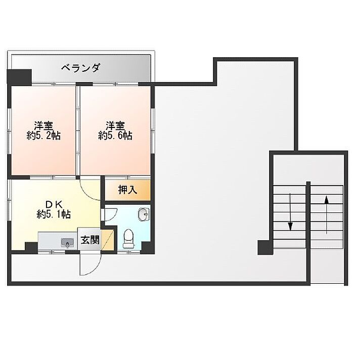 1フロア1世帯の広々2K空き出ました♪オール洋間へ改装済み◎
