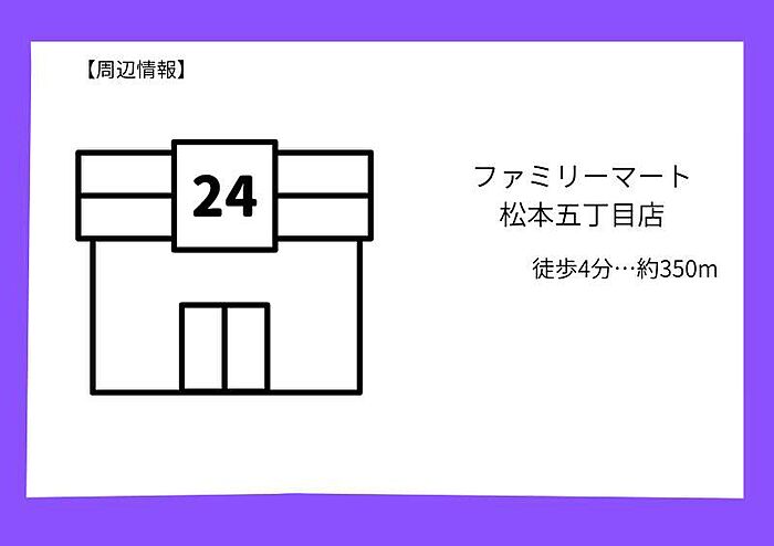 <初期費用概算 詳細>※2カ月分●家賃等(合計:128、708円)・家賃:92、000円・共益費:13、000円・駐車場使用料:14、300円・環境維持費:1、100円・インターネット利用料:7、260円・事務手数料:1、048円※月の途中でご契約の場合、日割りが加算されます。●入居時発生費用等(合計:168、130円)・礼金:46、000円・敷金:0円・退去時清掃費:41、800円・契約時保証委託料:63、830円・鍵交換費:16、500円<近隣情報>■フレッシュプラザユニオン松本店(徒歩11分…約800m)■コープ美里(徒歩24分…約1800m)■タウンプラザかねひで越来店(徒歩23分…約1600m)■ファミリーマート松本五丁目店(徒歩4分…約350m)