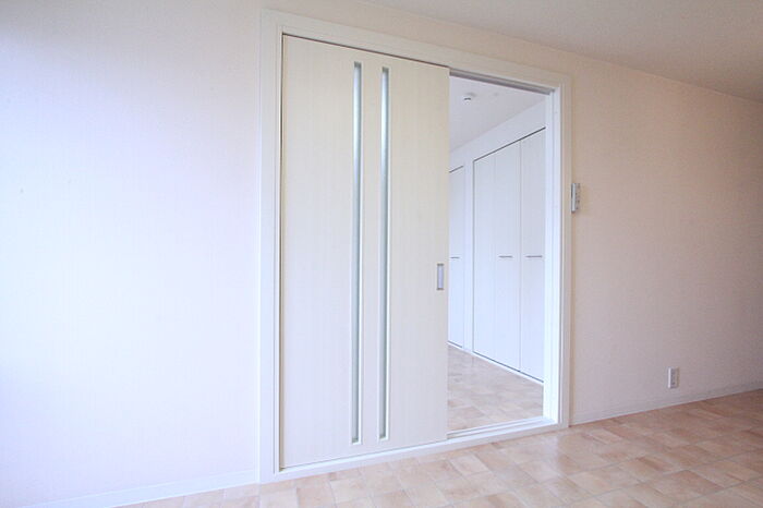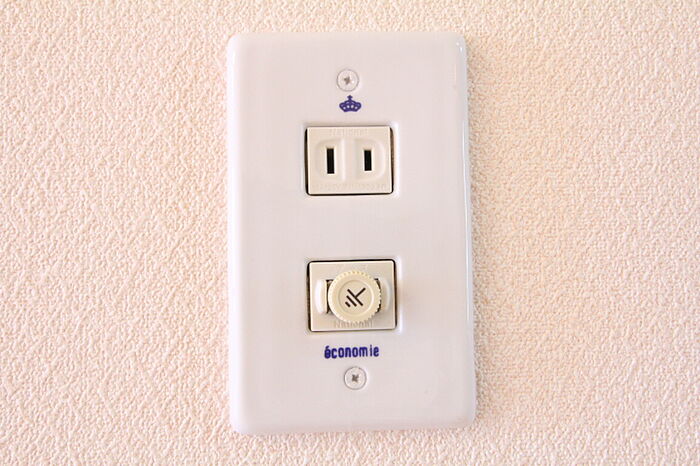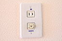 暗証番号かカードをかざして使用する電子錠採用。お洒落な陶器スイッチプレート、コンセントプレートを採用している唯一のお部屋