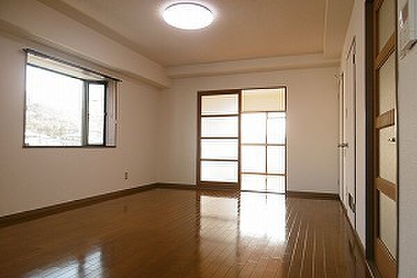 出窓いっぱいの角部屋で日当たり良好( )リビングの広さも好評なお部屋です フローリングで設備も
