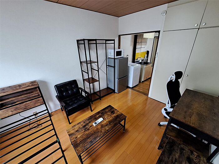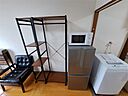冷蔵庫・洗濯機・電子レンジ付き テーブル、椅子、ベッド等の家具もついてます