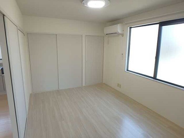 2LDKへ間取り変更、全室フローリングへ。室内物干し、ガスコンロ、洗髪洗面化粧台、エアコン2台設置済みです。 駐車場1台込