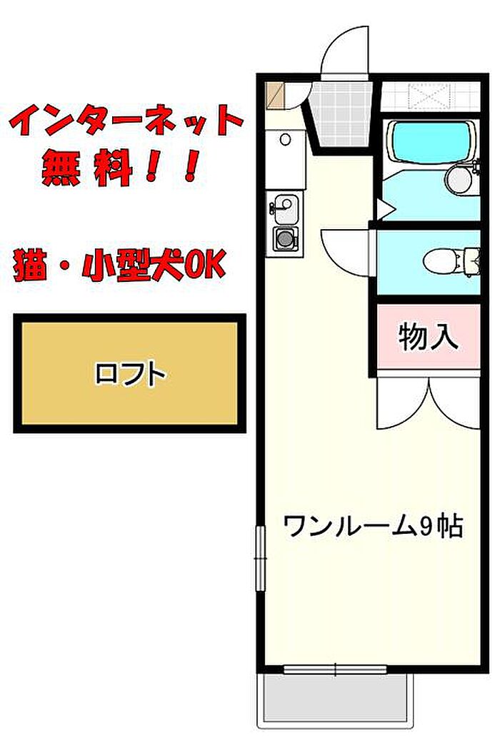 インターネット無料・ペット複数可のロフト付きワンルーム♪