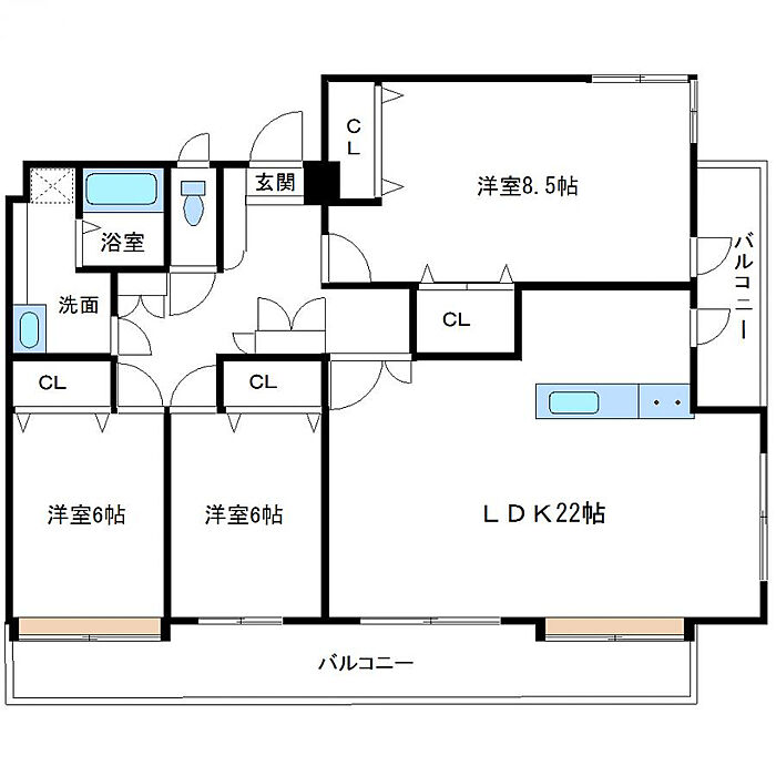 (LDK22帖、洋室8.5帖、洋室6帖、洋室6帖)