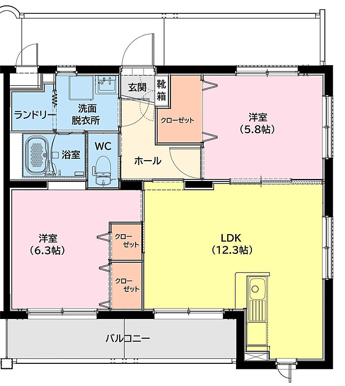 (LDK12.3畳 洋室6.4畳 洋室5.8畳)