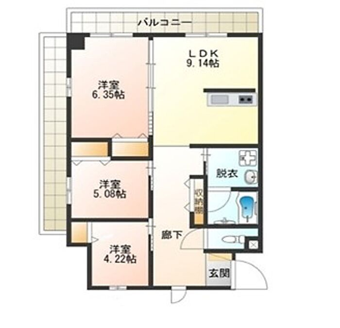 グリーンレイク 3-B 3DK/3階