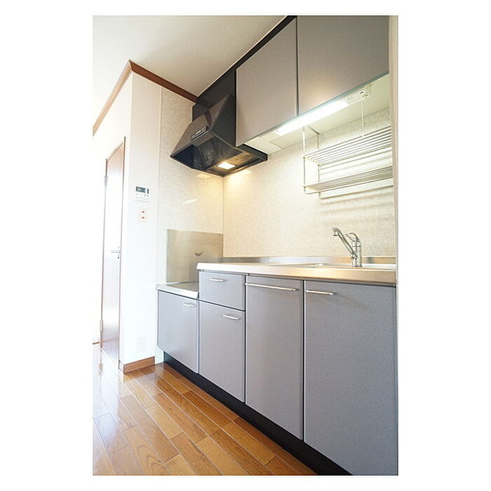 茨城大学1150m 8帖の洋室には奥行きのあるクローゼットを配置、室内物干しも完備しています。駐車場付き、充実したキッチンセットや脱衣スペースも魅力です。