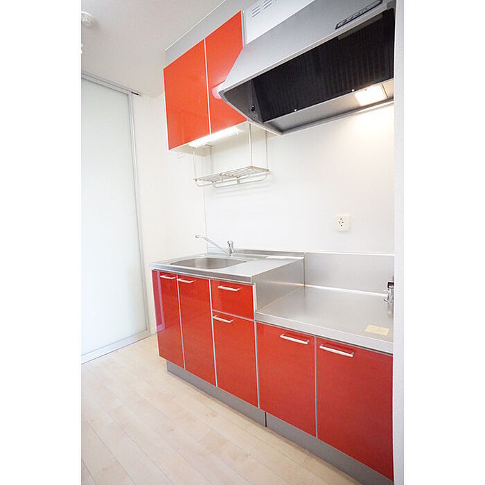 茨城大学750m。玄関ホールや洗面スペースでより快適な空間に!クローゼットはアクセサリーから大物まで機能的に収納。ウレシイ設備を随所に散りばめました。キッチン赤。