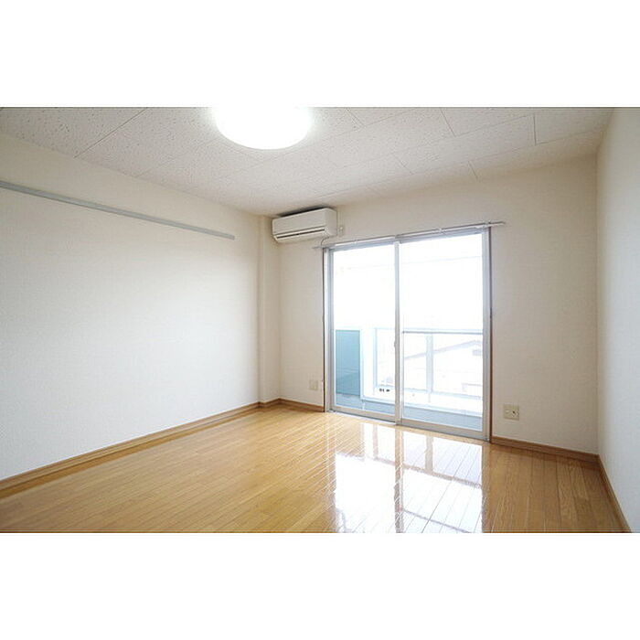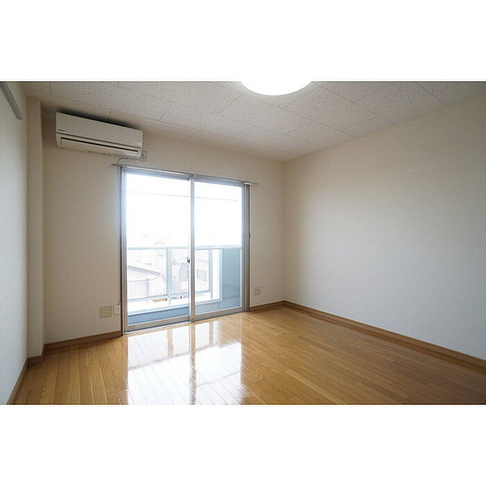茨城大学700m 7.8帖の洋室にはシンプルで使いやすい収納を配置、ベットやTVをバランス良く配置出来る広さ重視の1K。