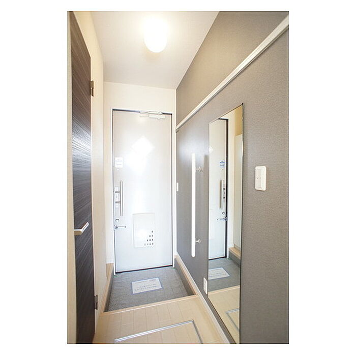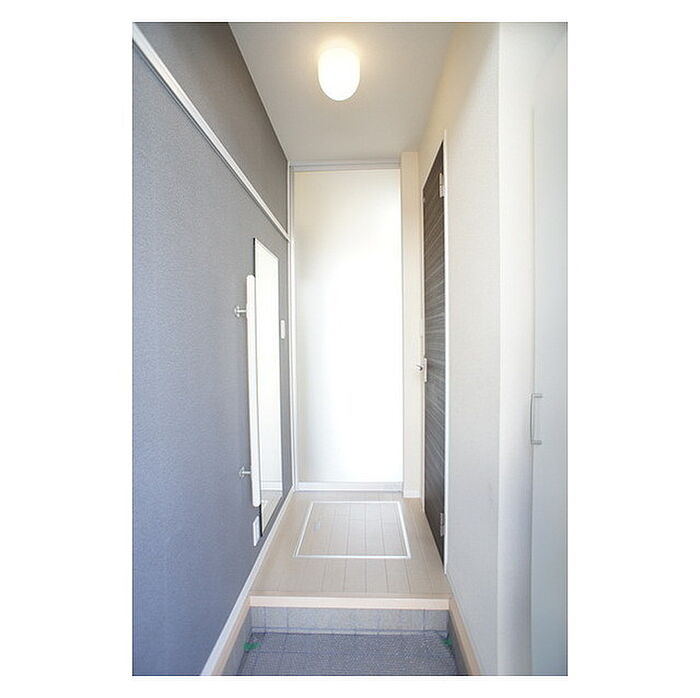 茨城大学750m 玄関ホールや洗面スペースでより快適な空間に!クローゼットはアクセサリーから大物まで機能的に収納。ウレシイ設備を随所に散りばめました。キッチン赤