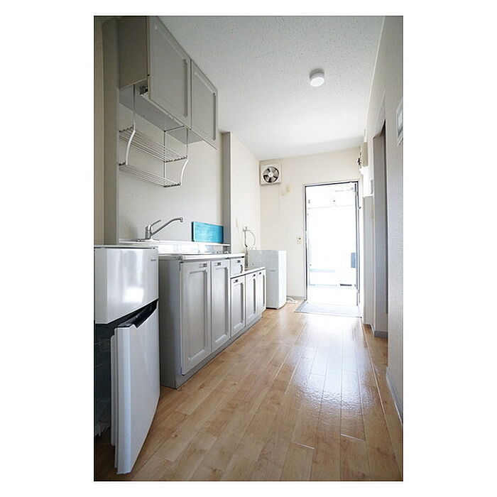 茨城大学500m 広めの8帖サイズに使い勝手良い収納を配置。配置をイメージしやすい空間です。独立洗面台設置もうれしいポイント。家電3点(冷蔵庫・洗濯機・照明)