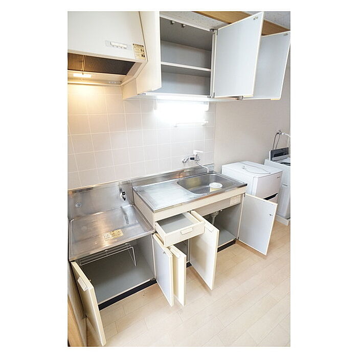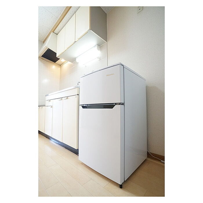 茨城大学1350m 家電3点(冷蔵庫・洗濯機・照明)面倒なお手配不要。充実したキッチンスペースを実現。バランス良くレイアウトできるお部屋です。