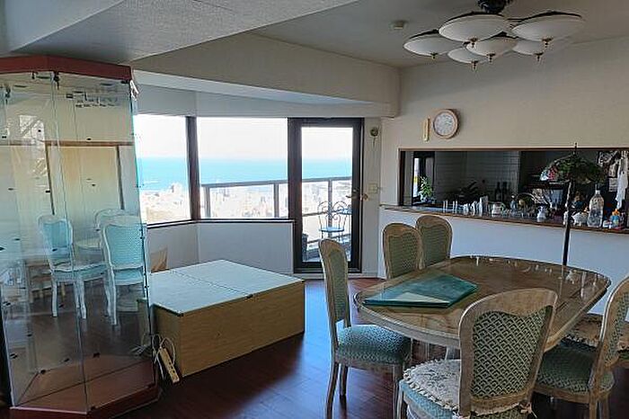 広いルーフバルコニー付の角住戸。海・市街・海上花火大会は室内から望めます