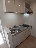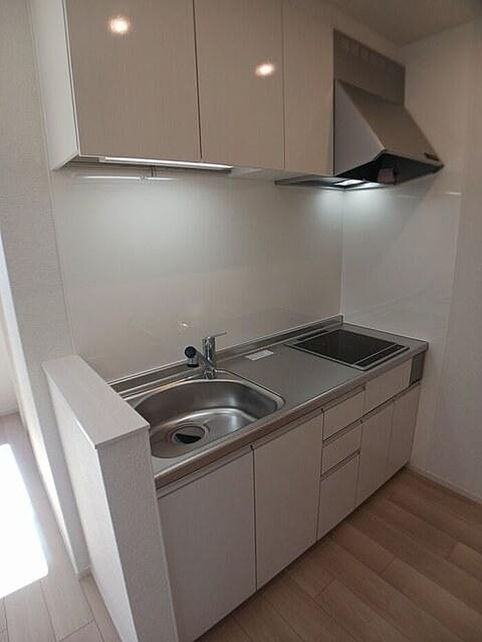 真っさら新築の物件、更にシステムキッチン設置済で一体感のあるデザインの台所です。インターネット無料