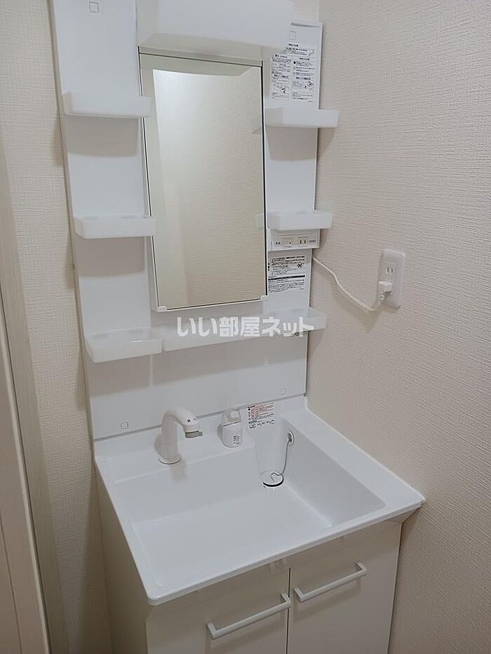 忙しい朝でも鏡を見ながらサッと身支度を整えることができる独立洗面台があります。