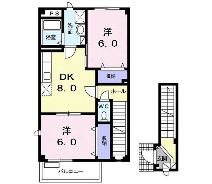 パレスマルエイ A棟 201 2DK/2階