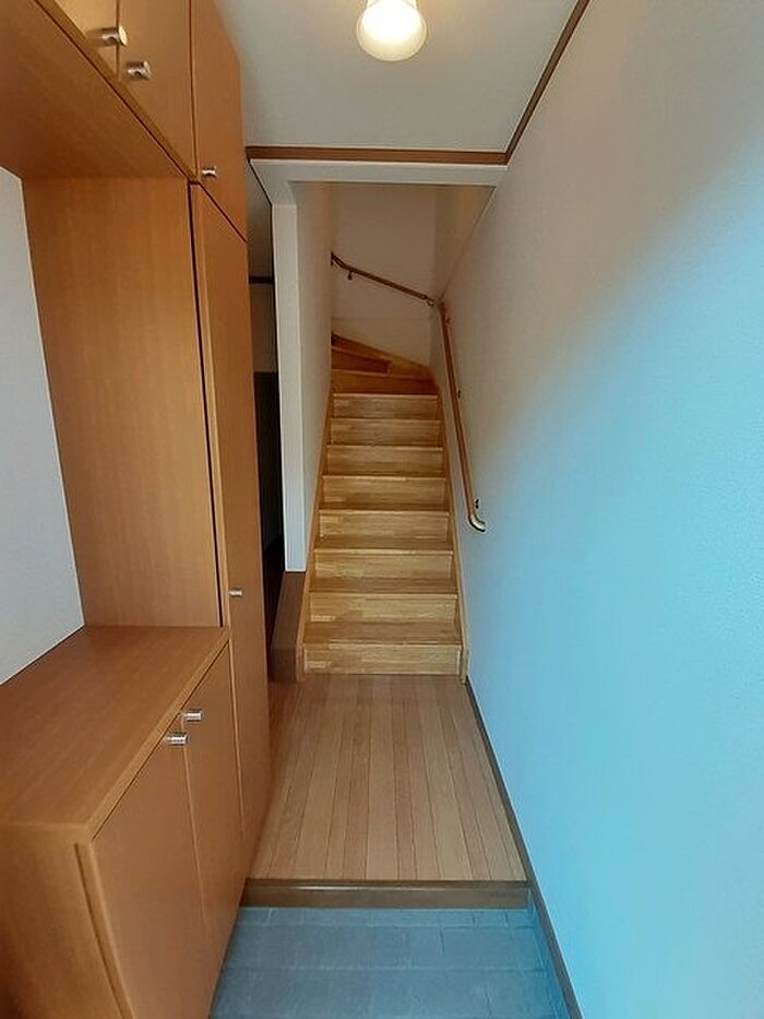 来訪者をモニターで確認できるTVインターホン付きです。収納力が高い、洗面化粧台のある物件です。