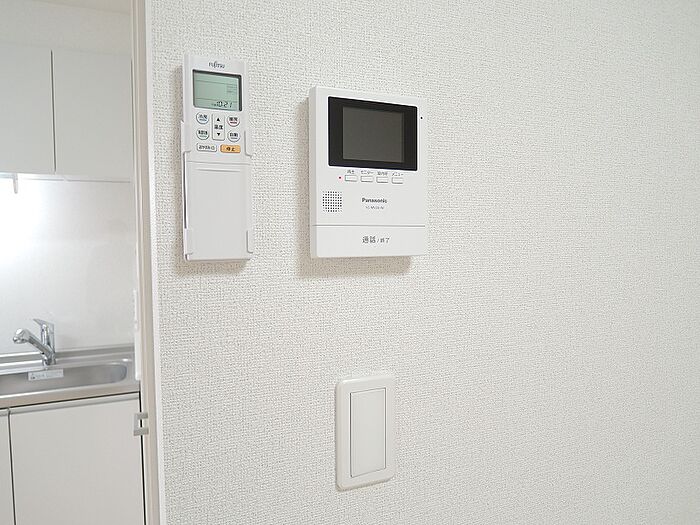 知らない人が来た時でも玄関を開けずに顔を確認できるモニター付きインターホンが付いております。