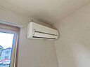 訪問者をカメラで確認できるTVインターホン設置済み。エアコン付きなので、室内の温度調整が簡単です。