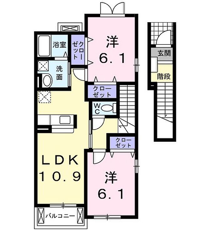 カーサ はぴねすB 201 2LDK/2階