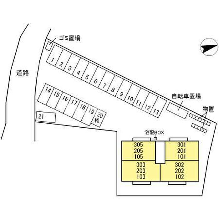 空有 料金:賃料に含む 1台付/2台目3300円 P1〜13は前向き駐車でお願いします