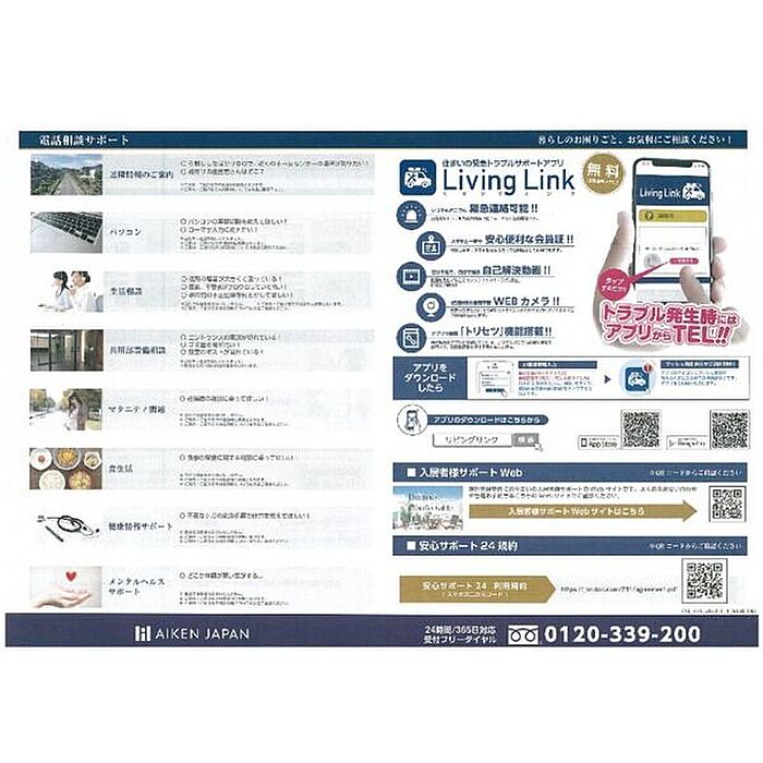 初期費用:ルームクリーニング代、スマートロックシステム設定費用、室内消毒費、事務手数料:92400円、ランニング費用:町費(月額)、安心サポート24(月額)、火災保険料(月額):1770円