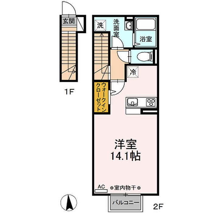 メゾンピュール 202 ワンルーム/2階