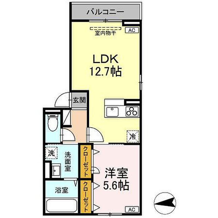 ソレイユ咲田B 201 1LDK/2階