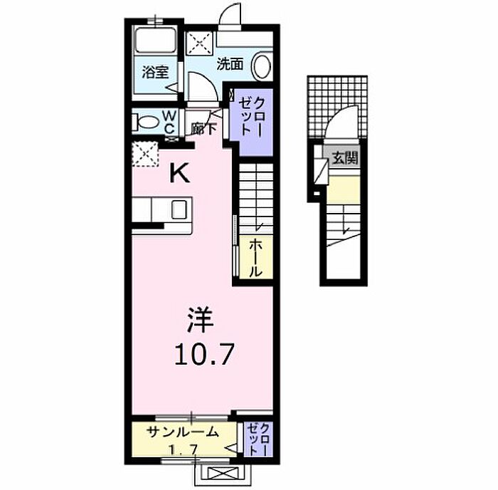 アドラブール 203 ワンルーム/2階