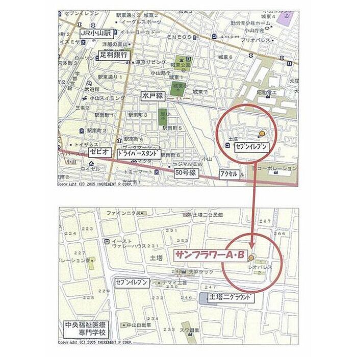 - JR東北本線 「 小山駅 」 バス13分 土塔二グランド北下車 徒歩2分