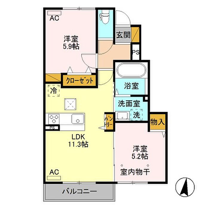メゾン・ド・クロワール/ハーモニーランド ハーモニーランド 102 2LDK/1階