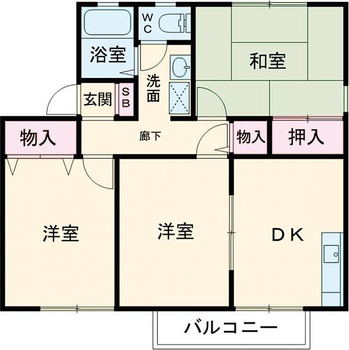 ソシアB B201 3DK/2階