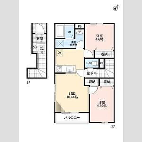 春日部市新宿新田 アパート 2LDK/2階