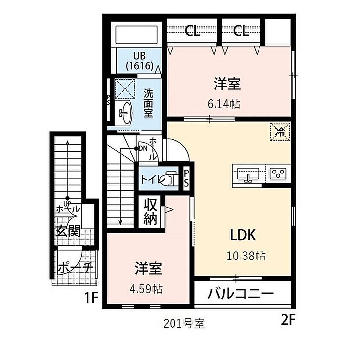 所沢市大字上安松 アパート 2LDK/2階