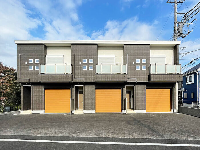 ガレージハウス!!2台駐車可能(前面駐車スペース含)♪ システムキッチン、宅配BOX、防犯カメラ、浴室換気乾燥機、TVモニター付きインターホンなど設備も充実!!