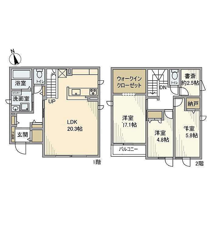 (リビングダイニングキッチン 20.3帖(1階)