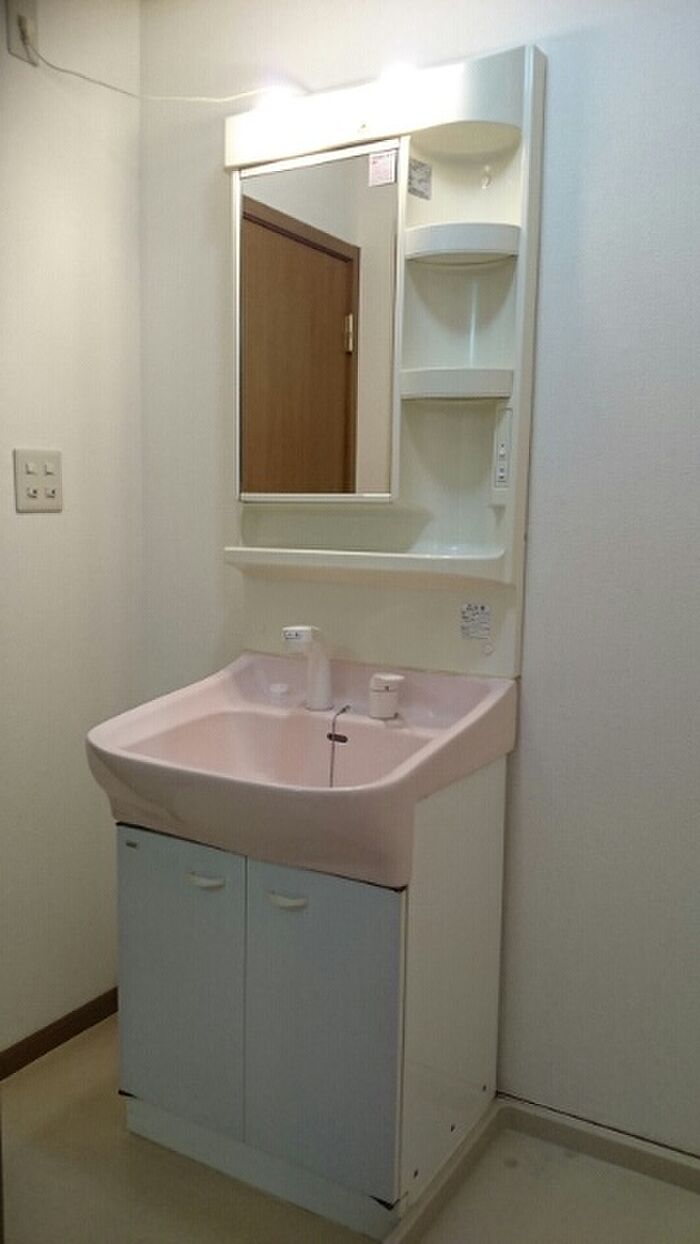 洗面所は浴室から独立しており、お風呂の湿気で曇りにくくなっています。アパートタイプのお部屋です。