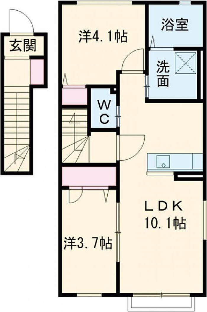 LDK10.1畳 洋室4.1畳 洋室3.7)