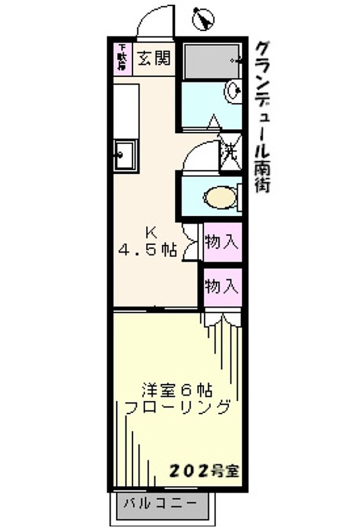 グランデュール南街 202 1DK/2階