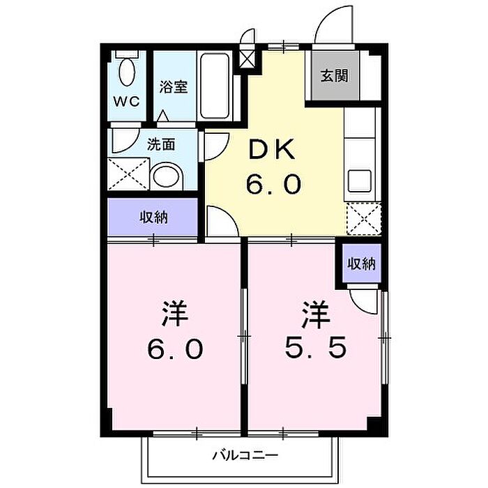 グリーンウッズK−B 201 2DK/2階