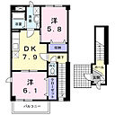 マウントシティB 201 2DK/2階