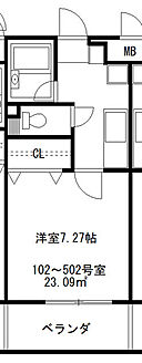 プランドール相模大野 102 1K/3階