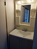 収納スペースが大きいため、生活感のでやすい小物類もすっきりと隠して収納できる洗面化粧台があります。