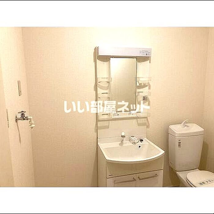 身支度のしやすい洗面化粧台付きの物件です。賃料が月5.4万円の物件です。一口コンロが付いています。