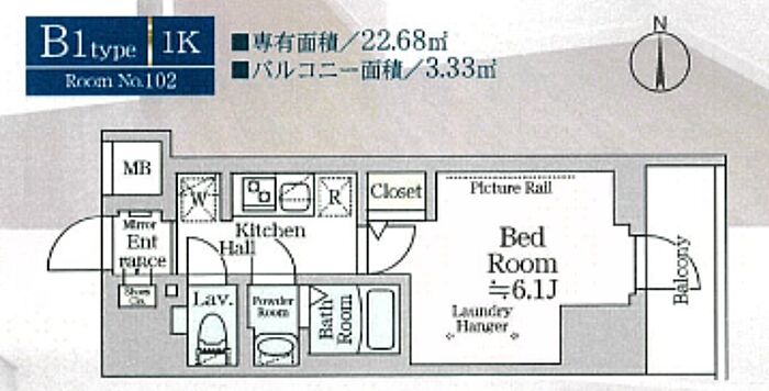 ルフレプレミアム横浜リーヴァ 102 1K/1階