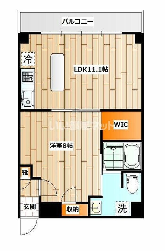 洋室、LDK、キッチン、洗面所、浴室、トイレ、玄関