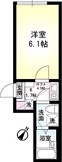 敷礼0違約金有 TVモニター付インターフォンロフト(4.5帖)付バストイレ別室内洗濯機置場補償付帯料 S:1,210円・F:1,430円/月原則:連保人&保証料不要口座振替550円/月 町会費等:200円