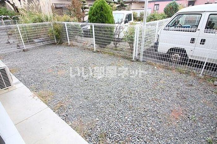 こちらの物件はフローリング張りです。広い園芸スペースのある専用庭がついています。