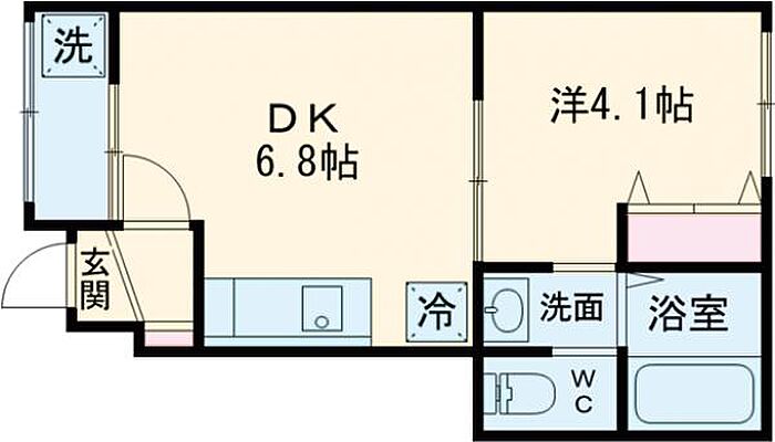 DK:6.8畳 洋:4.1畳 サンルーム:畳)