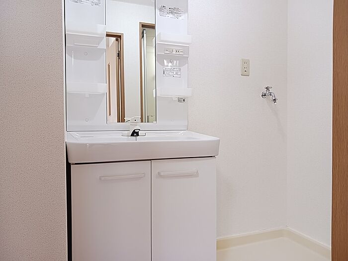 忙しい朝でも鏡を見ながらサッと身支度を整えられる洗面化粧台を採用しています。